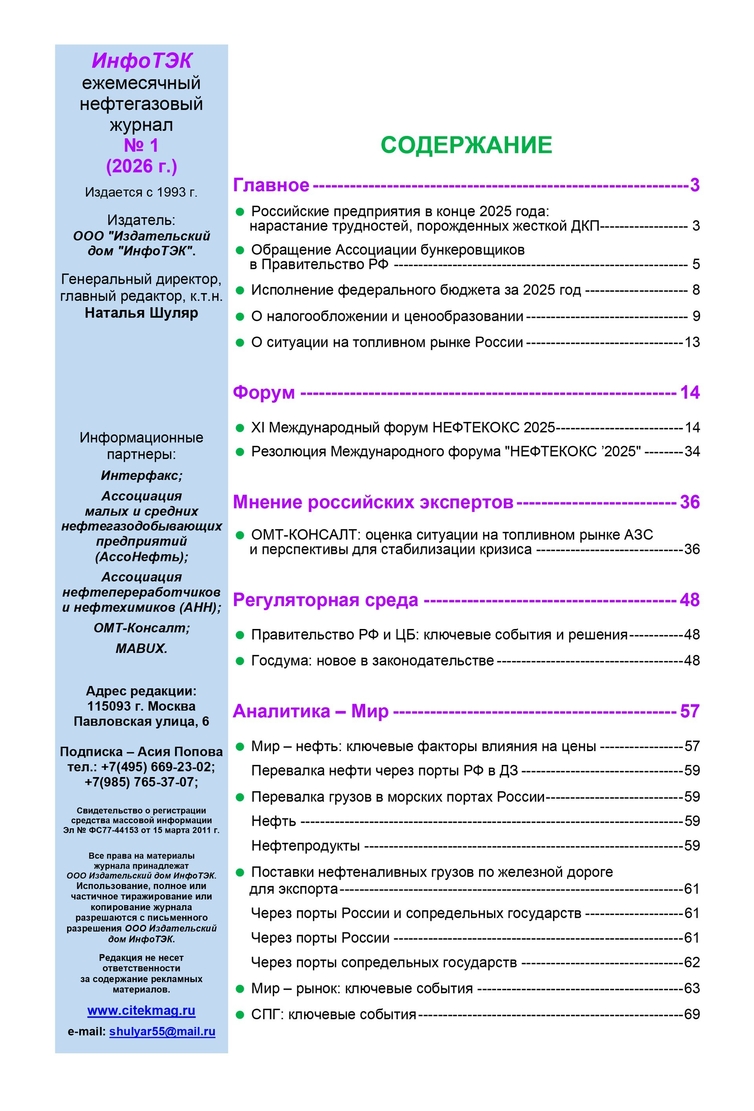 Нефтегазовый журнал "ИнфоТЭК" Содержание 01.2026