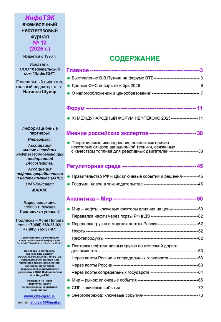 Нефтегазовый журнал "ИнфоТЭК" Содержание 12.2025